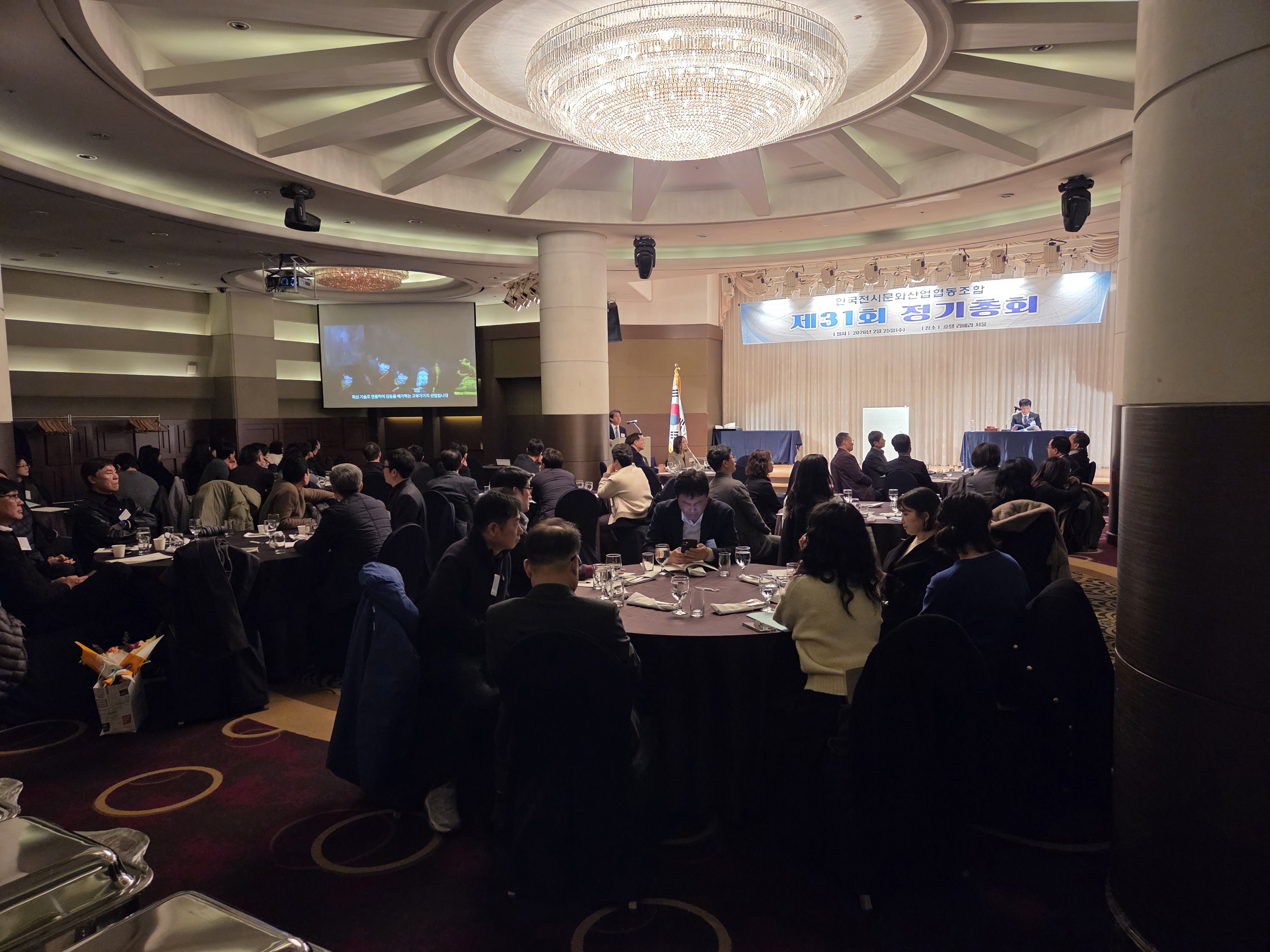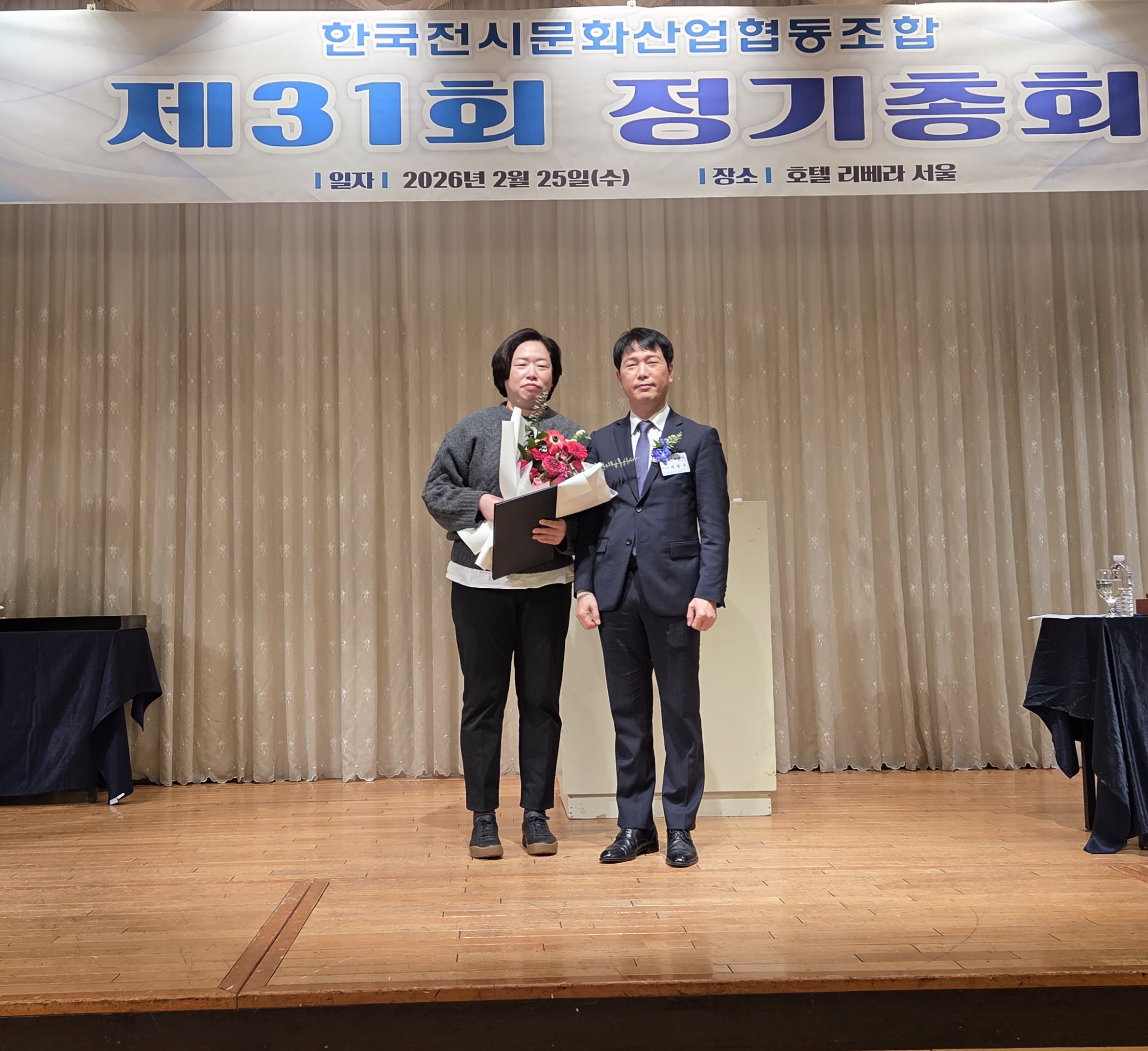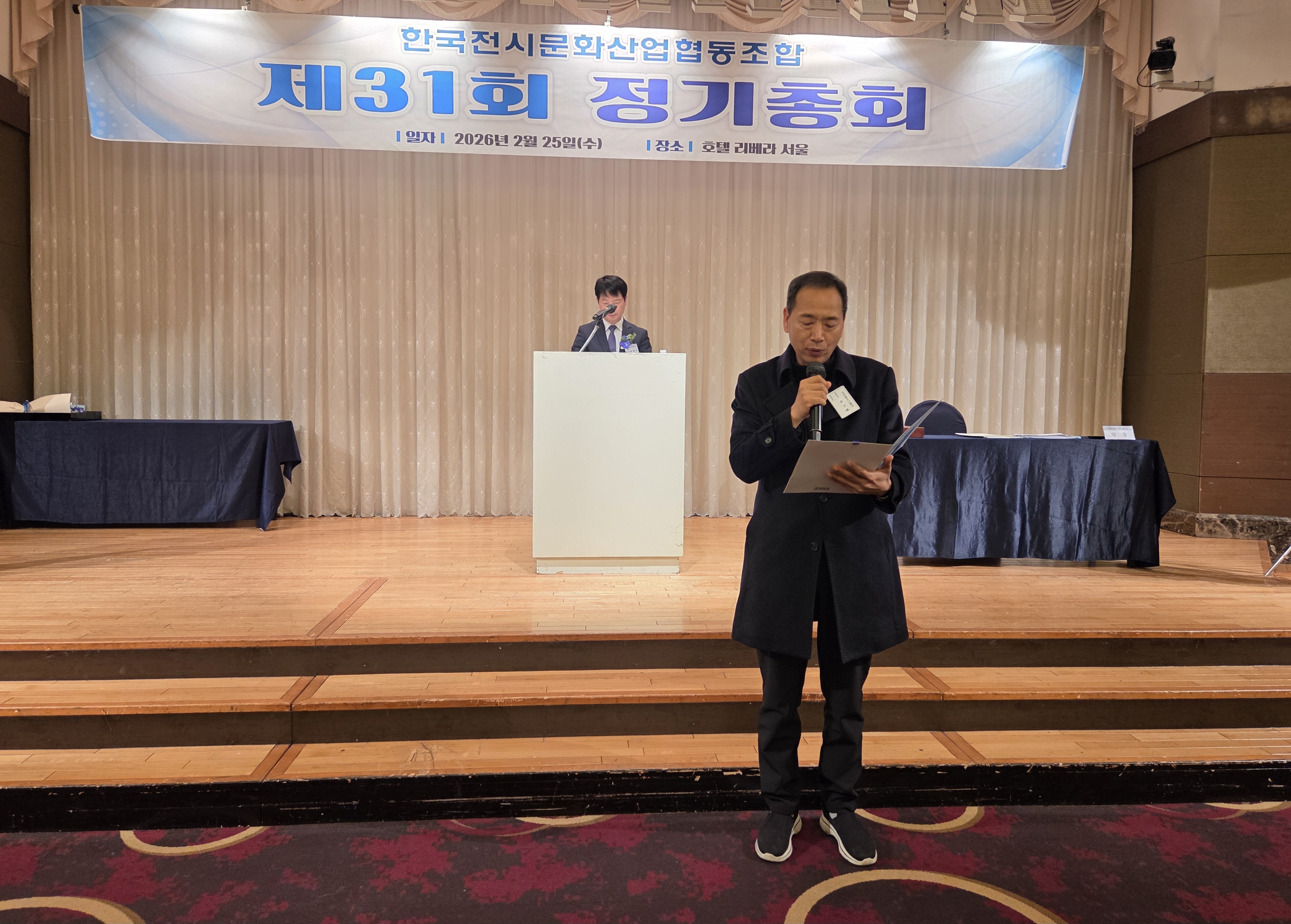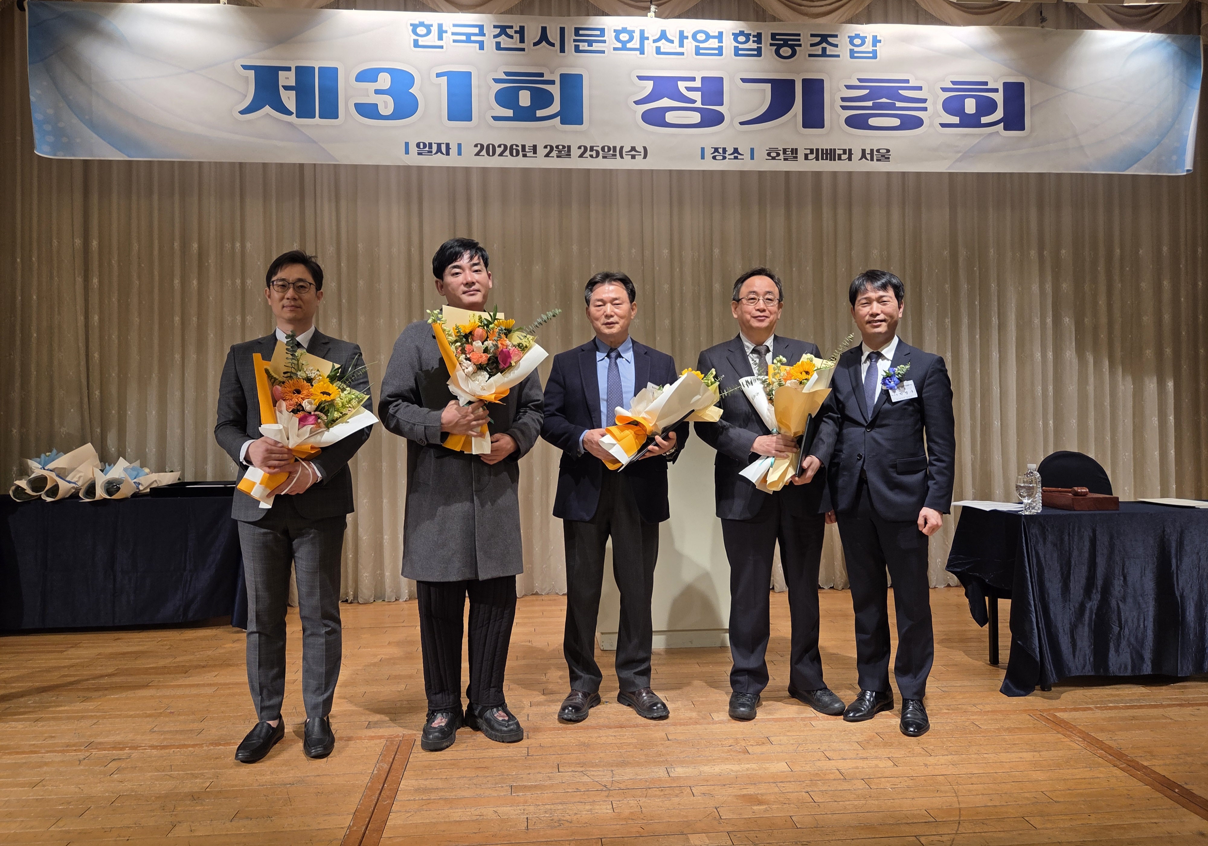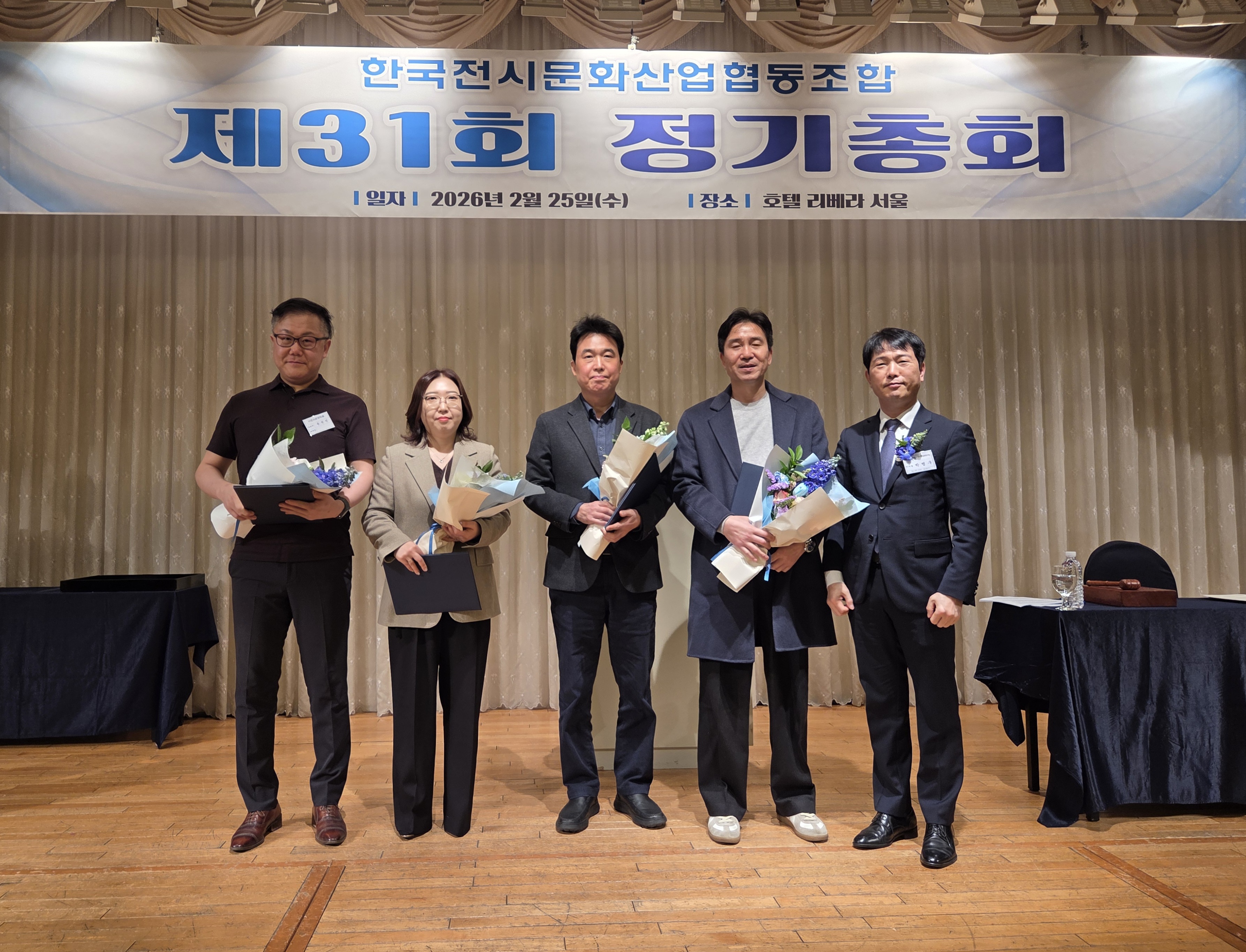 한국전시문화산업협동조합은 2026년 2월 25일(수) 오전 11시에 청담 리베라 호텔에서 제31회 정기총회를 개최하였습니다. 이번 정기총회에서는 2025년도 사업보고 및 수지 결산 승인(안), 2026년 사업계획 및 수지예산 승인(안) 등 안건 심의 등 다양한 안건을 논의하였으며 상정된 안건들은 모두 가결되었습니다.